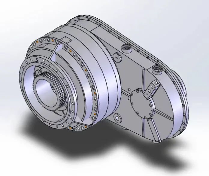 該產(chǎn)品是為某科研單位研發(fā)的大功率大速比NW型高速行星齒輪箱,齒輪箱額定功率8000kW,額定輸入轉(zhuǎn)速4000r/min,單級減速比20,齒輪線速度45m/s。該齒輪箱為我司自主開發(fā)的首臺NW型行星齒輪箱,解決了NW型行星機構(gòu)配齒設(shè)計、均載機構(gòu)設(shè)計、行星輪滑動軸承設(shè)計、薄壁氮化內(nèi)齒圈制造、雙聯(lián)行星輪加工制造等關(guān)鍵技術(shù),為我司大功率大速比高速行星齒輪箱的開發(fā)奠定了基礎(chǔ)。