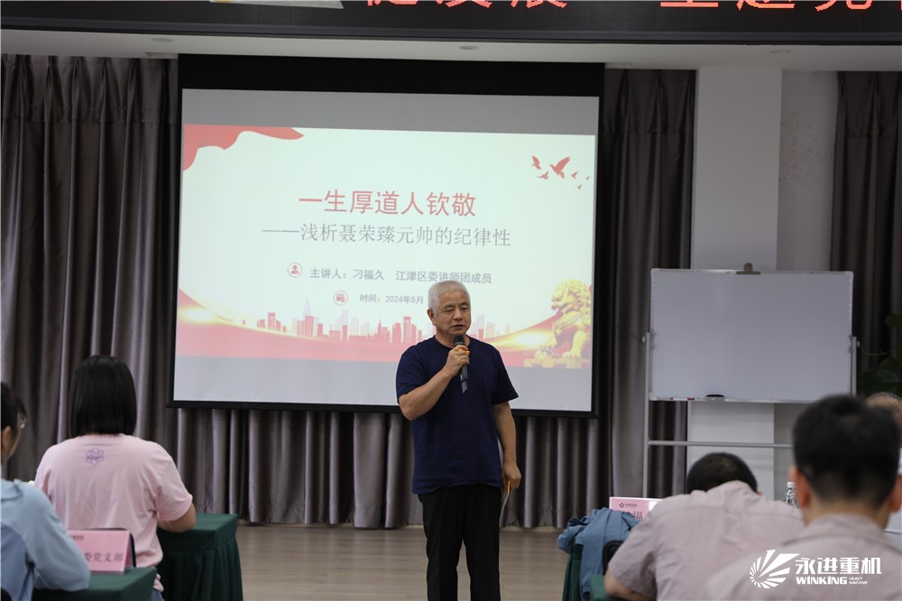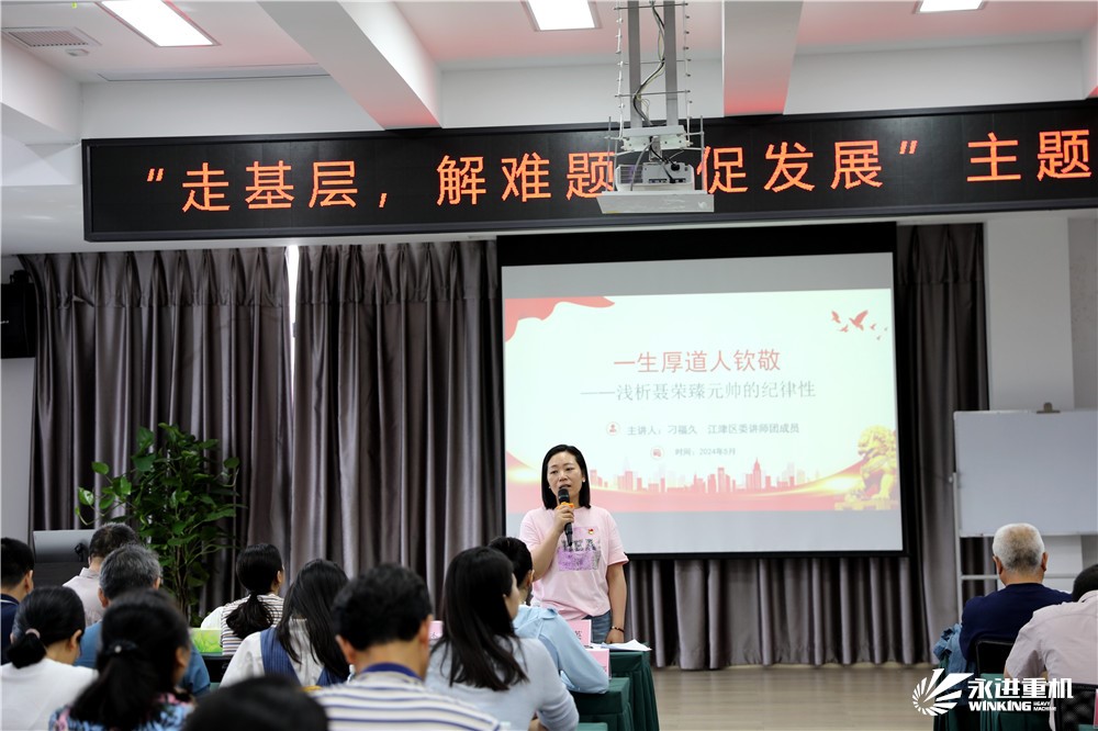 參觀后,在四樓會議室進行了黨紀學習教育,學習了習近平總書記在新時代推動西部大開發(fā)座談會上的重要講話 ,《中國共產(chǎn)黨紀律處分條例》,觀看了警示教育片。隨后,區(qū)關(guān)工委思想道德教育團成員、白沙鎮(zhèn)二級巡視員刁福久以“一生厚道人欽佩-淺析聶榮臻元帥的紀律性”為題,為全體黨員干部上了一堂生動的紀律黨課。他通過生動的講述,配以大量史料佐證,真實地再現(xiàn)了聶榮臻元帥在法國勤工儉學、中國革命實踐、國防科技發(fā)展等不同時期如何踐行初心和使命,嚴守黨的紀律,遵守黨的規(guī)定,清正廉潔,嚴格家風家訓,為黨和人民的事業(yè)奮斗一生的傳奇經(jīng)歷。宣講中,刁福久飽含深情,黨員同志們凝神靜聽,現(xiàn)場不時爆發(fā)出熱烈掌聲。