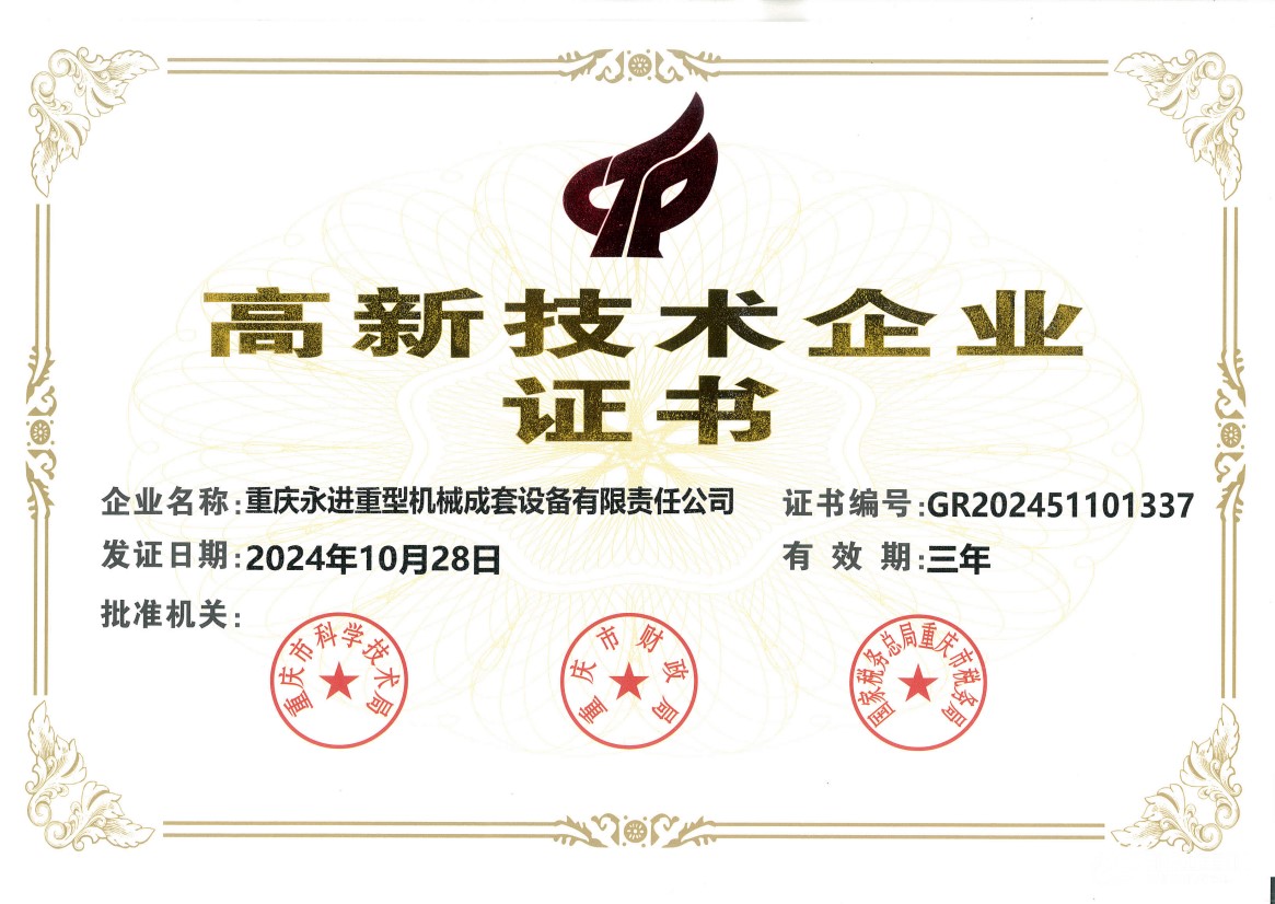 永進(jìn)重機(jī)高企證書
